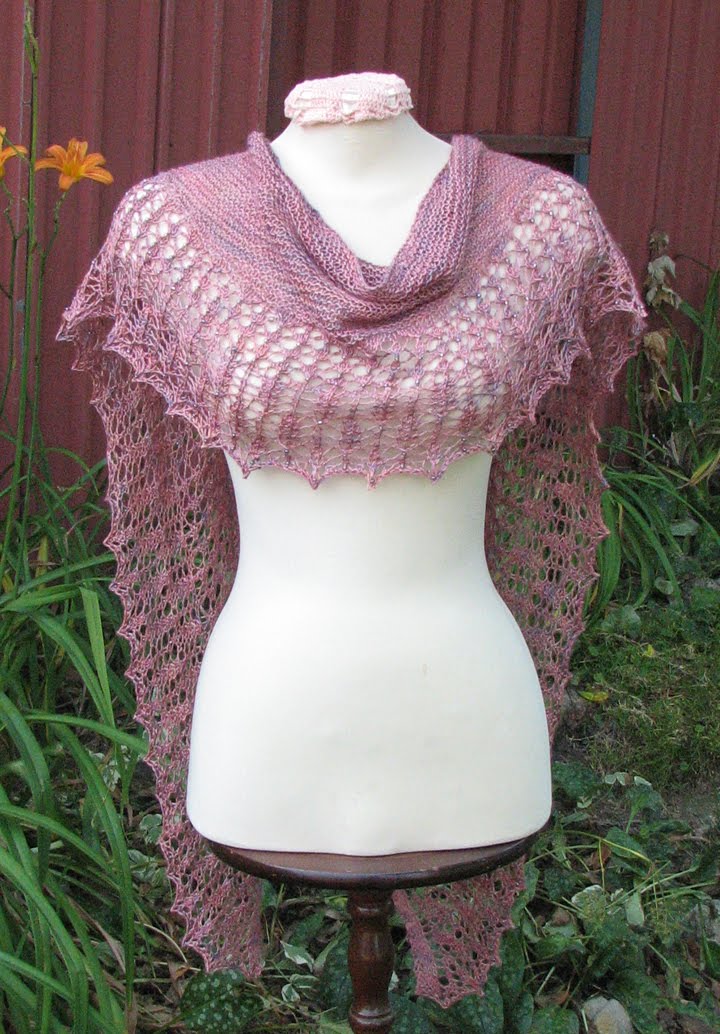 When I started this design, I didn't really have anything in mind, other than knowing I wanted it wide but shallow, with a garter base done in short rows.