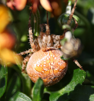 Then I immediately came in an googled, comparing my pictures to ones on the internet. I'm pretty sure she's a marbled orb weaver, but if there are any spider aficionados out there, feel free to correct me.